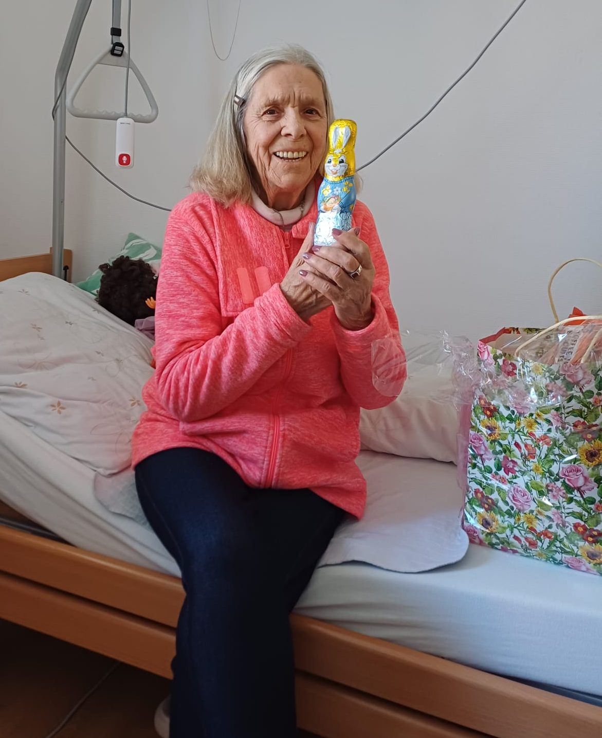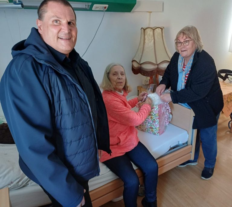 Frau Jessat lebt in der Seniorenresidenz und war sichtlich erfreut über den Besuch und die Mitbringsel.