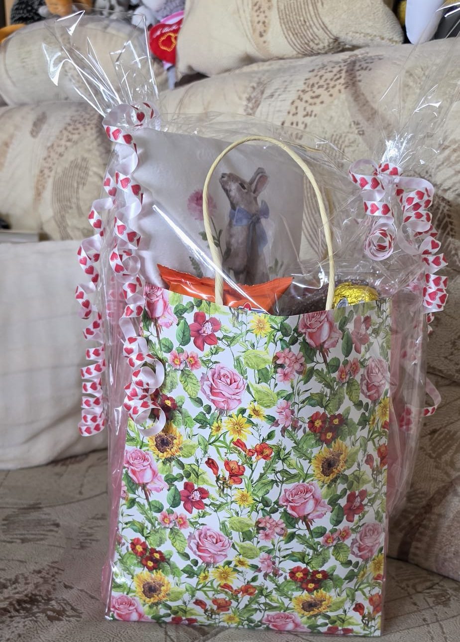 Die liebevoll von Silvia Zacharias gepackte Ostertüte wurde von Ellen Lömker, Ulf Lubke und Dr. Andreas Steiner an Frau Jessat übergeben.